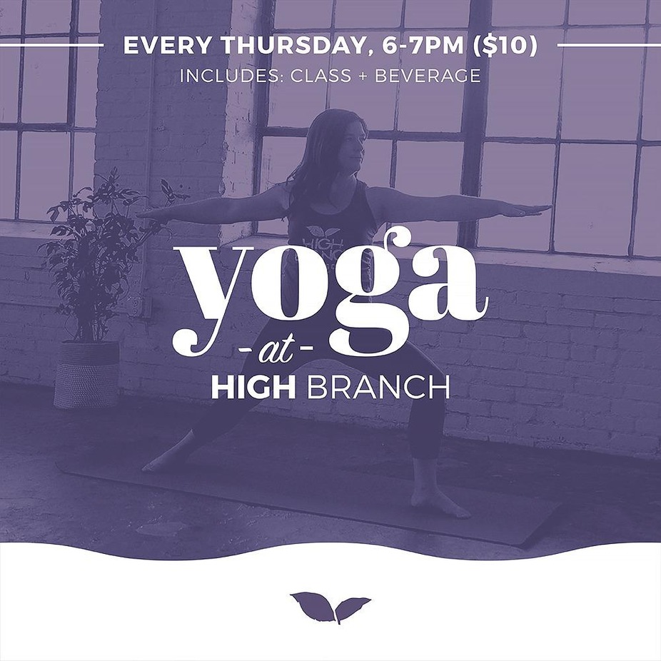Join us every Thursday at 6pm for Yoga at High Branch Brewing, located on the lower level of Gibson Mill Market! $10 gets you a class AND a beverage—because balance is important. Perfect your downward dog, then reward yourself with an upward pint. Walk-ins welcome, flexibility optional.